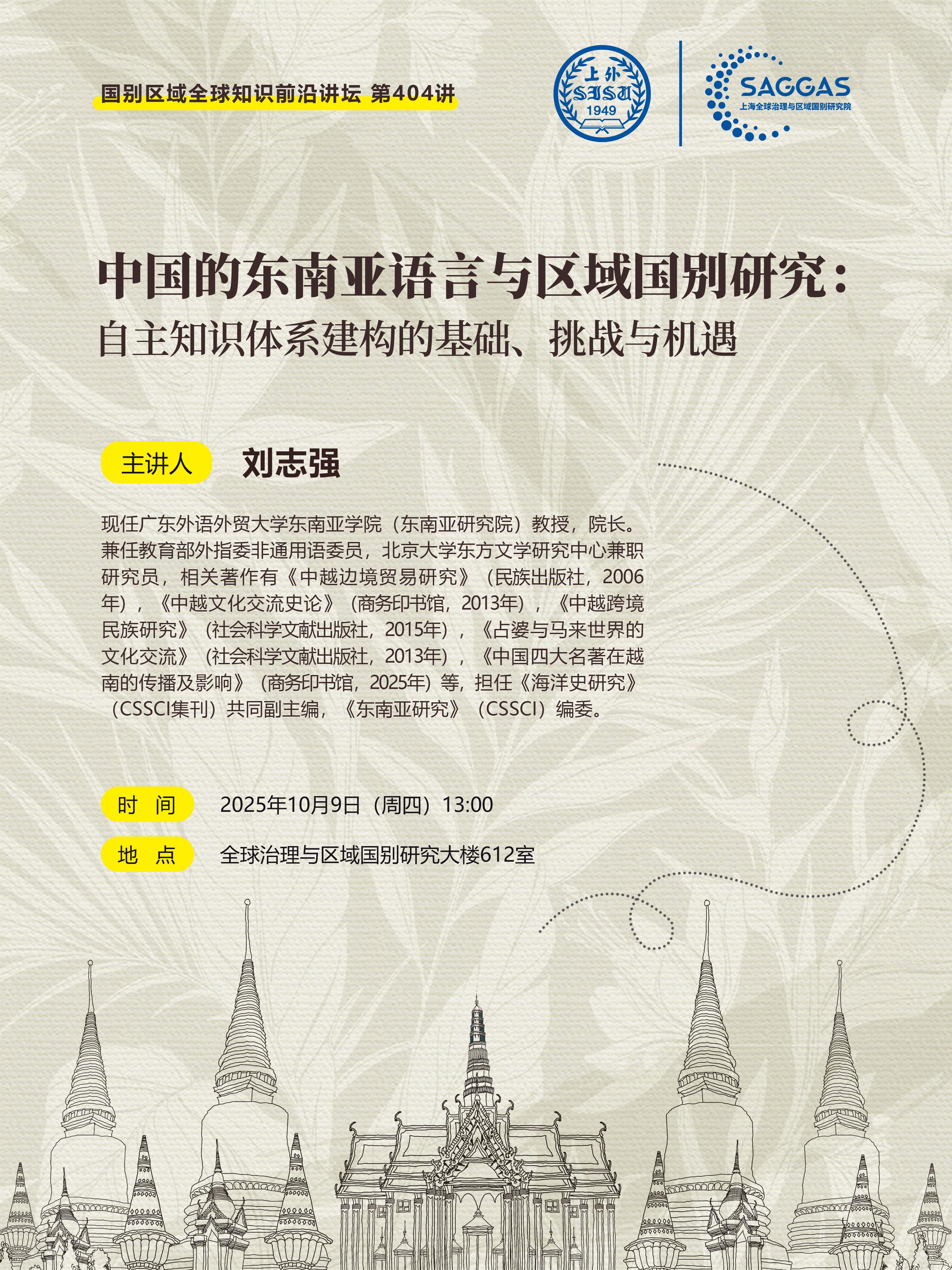 现任广东外语外贸大学东南亚学院(东南亚研究院)教授,院长。兼任教育部外指委非通用语委员,北京大学东方文学研究中心兼职研究员,相关著作有《中越边境贸易研究》(民族出版社,2006年),《中越文化交流史论》(商务印书馆,2013年),《中越跨境民族研究》(社会科学文献出版社,2015年),《占婆与马来世界的文化交流》(社会科学文献出版社,2013年),《中国四大名著在越南的传播及影响》(商务印书馆,2025年)等,担任《海洋史研究》(CSSCI集刊)共同副主编,《东南亚研究》(CSSCI)编委。