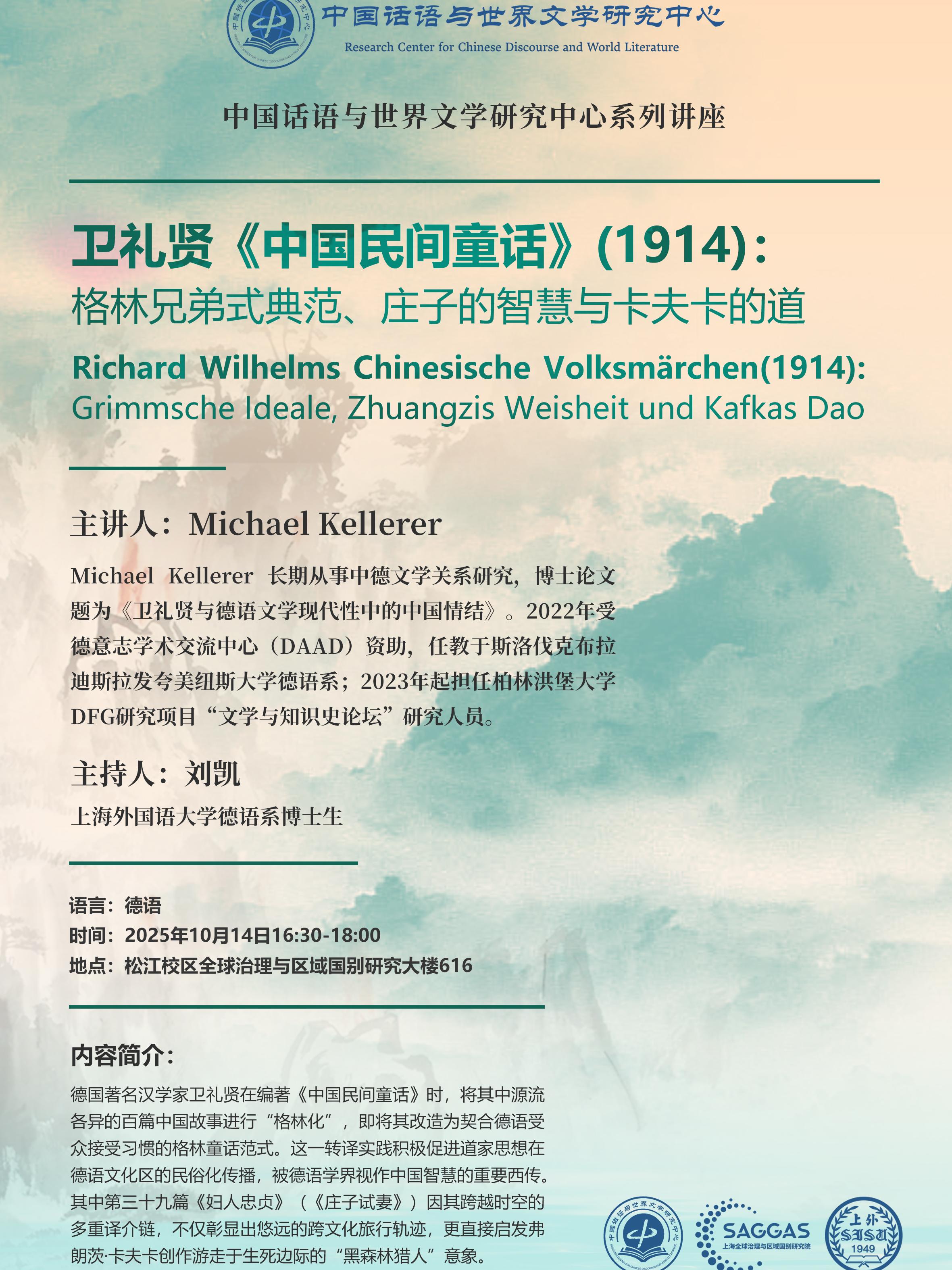 Michael Kellerer长期从事中德文学关系研究,博士论文题为《卫礼贤与德语文学现代性中的中国情结》。2022年受德意志学术交流中心(DAAD)资助,任教于斯洛伐克布拉迪斯拉发夸美纽斯大学德语系;2023年起担任柏林洪堡大学DFG研究项目“文学与知识史论坛”研究人员。
