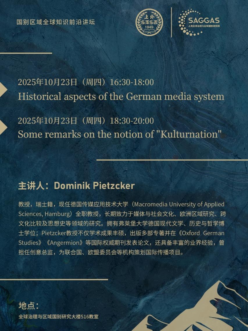 Pietzcker教授不仅学术成果丰硕,出版多部专著并在《Oxford German Studies》《Angermion》等国际权威期刊发表论文,还具备丰富的业界经验,曾担任创意总监,为联合国、欧盟委员会等机构策划国际传播项目。