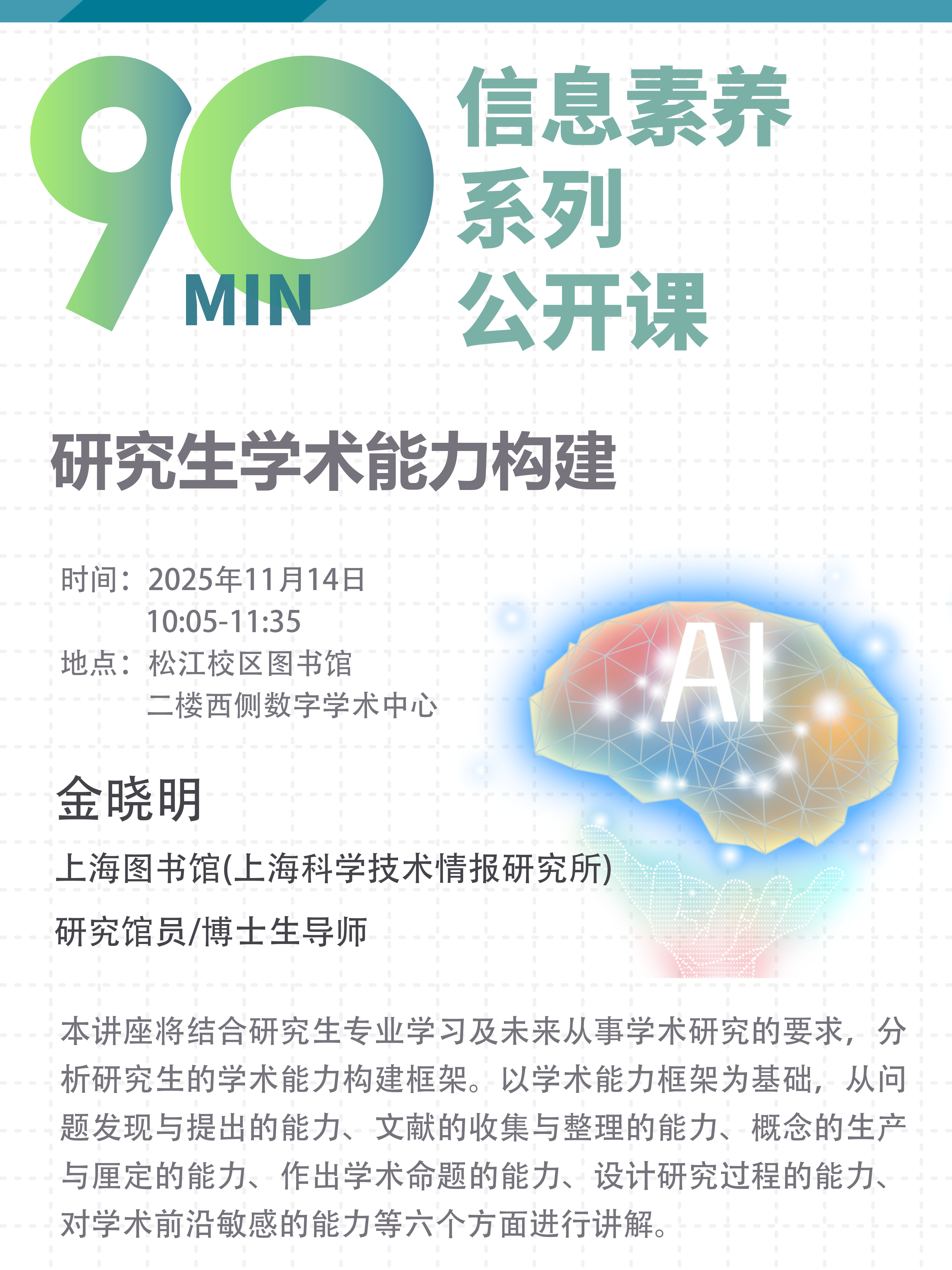 本讲座将结合研究生专业学习及未来从事学术研究的要求,分析研究生的学术能力构建框架。以学术能力框架为基础,从问题发现与提出的能力、文献的收集与整理的能力、概念的生产与厘定的能力、作出学术命题的能力、设计研究过程的能力、对学术前沿敏感的能力等六个方面进行讲解。