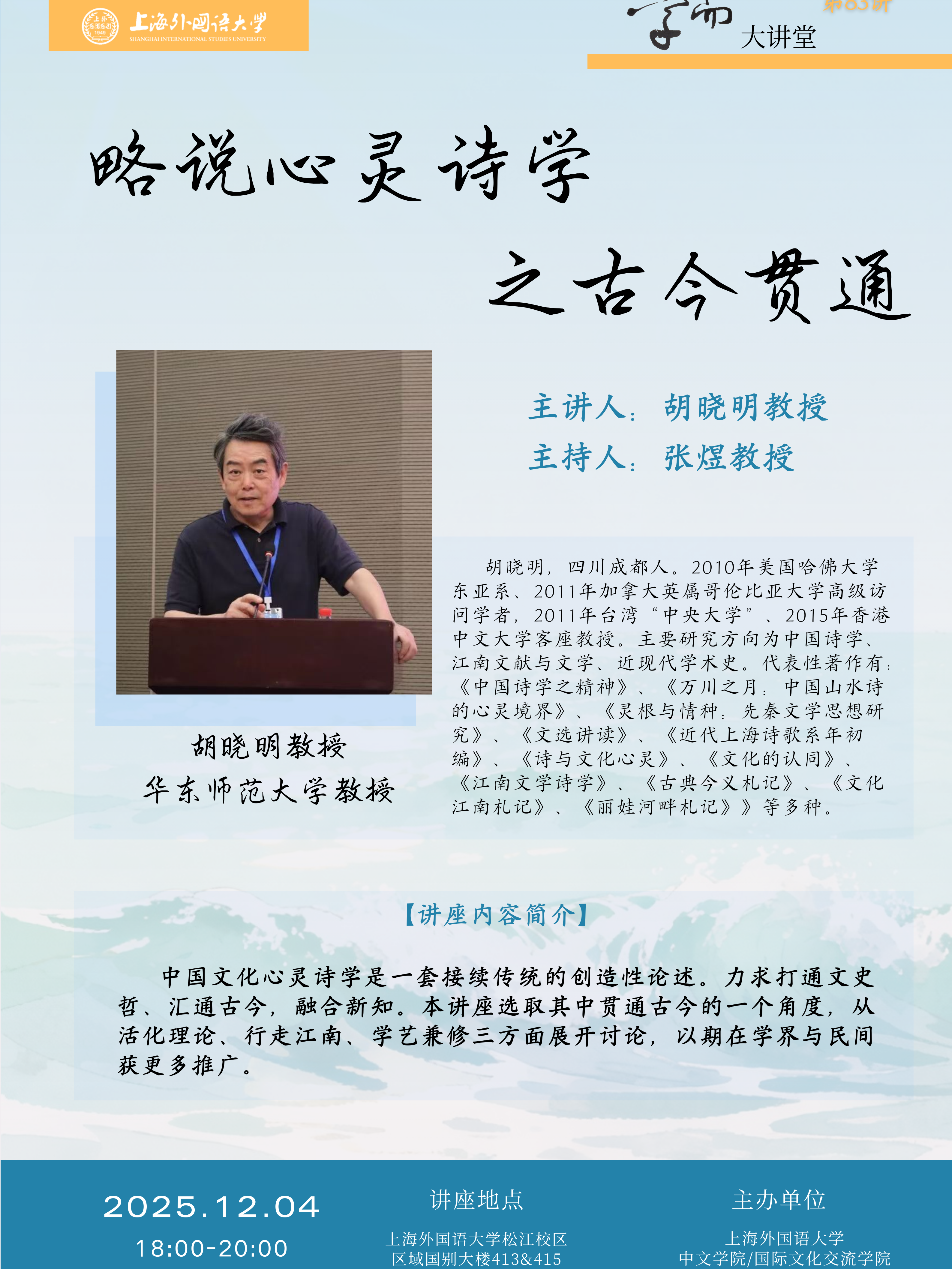 中国文化心灵诗学是一套接续传统的创造性论述。力求打通文史哲、汇通古今,融合新知。本讲座选取其中贯通古今的一个角度,从活化理论、行走江南、学艺兼修三方面展开讨论,以期在学界与民间获更多推广。