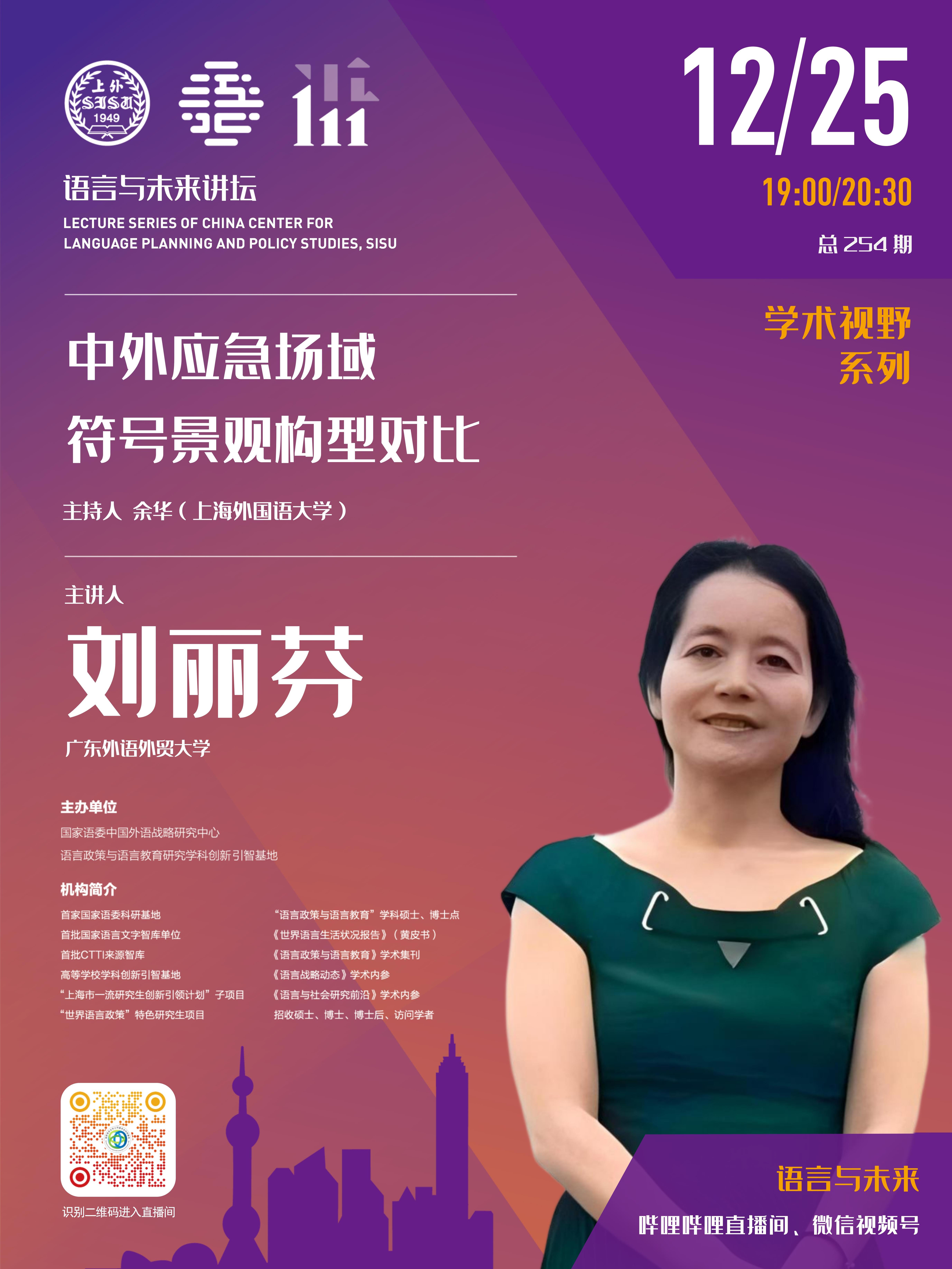 获取更多与本讲座相关的详细信息,敬请关注中国外语战略研究中心公众号“语言与未来”(ID: SISU_CCLPPS)的微信推送。