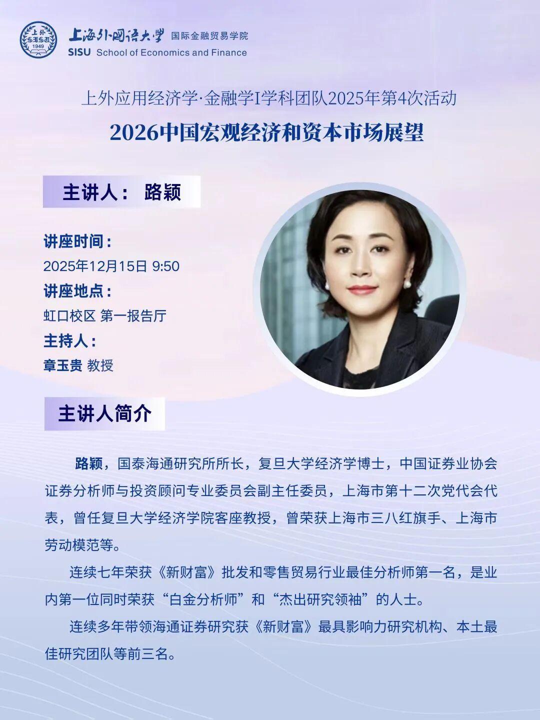 国泰海通研究所所长,复旦大学经济学博士,中国证券业协会证券分析师与投资顾问专业委员会副主任委员,上海市第十二次党代会代表,曾任复旦大学经济学院客座教授,曾荣获上海市三八红旗手、上海市劳动模范等。连续七年荣获《新财富》批发和零售贸易行业最佳分析师第一名,是业内第一位同时荣获“白金分析师”和“杰出研究领袖”的人士。连续多年带领海通证券研究获《新财富》最具影响力研究机构、本土最佳研究团队等前三名。