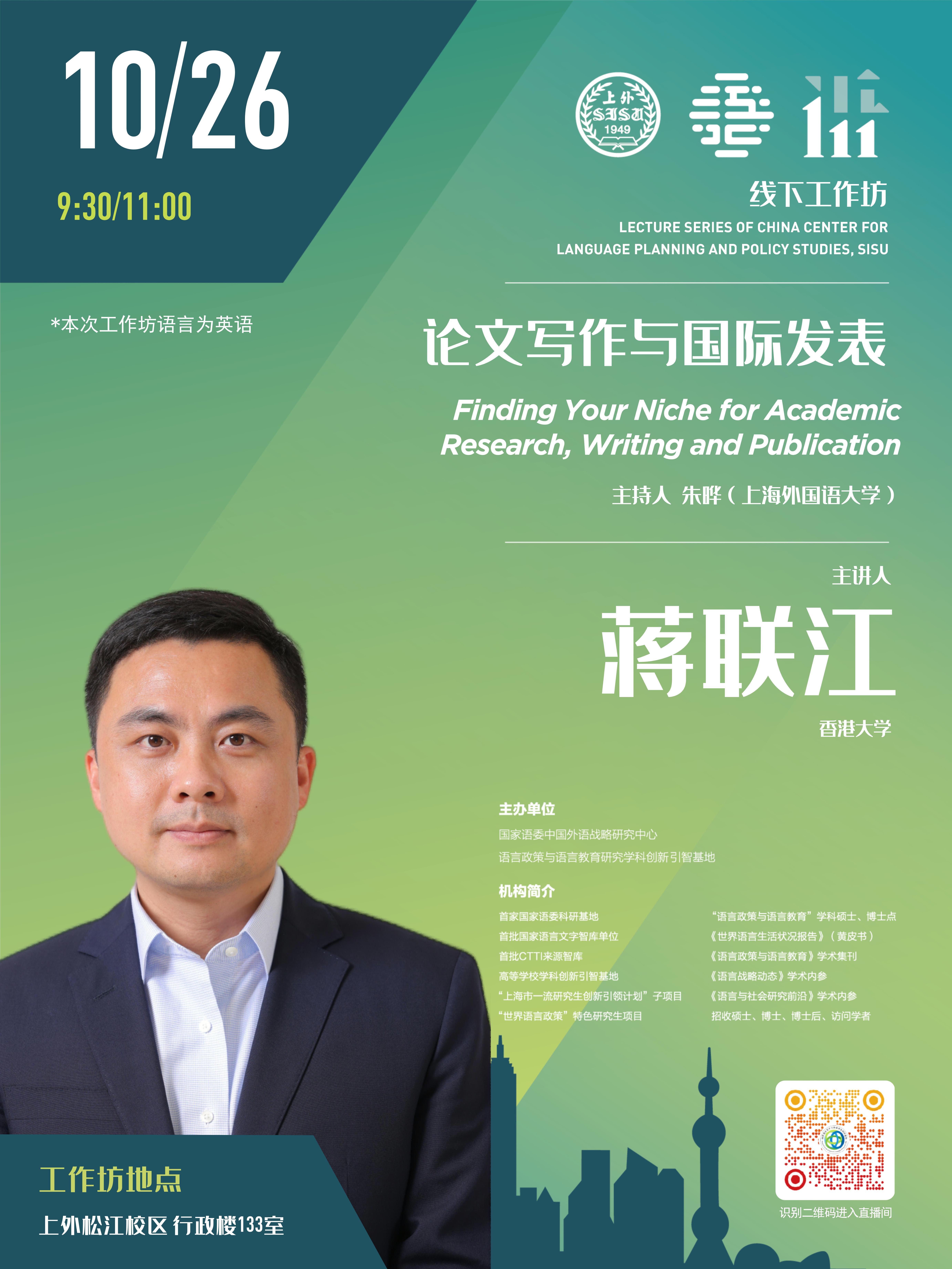 获取更多与本讲座相关的详细信息,敬请关注中国外语战略研究中心公众号 “语言与未来”(ID: SISU_CCLPPS)的微信推送。