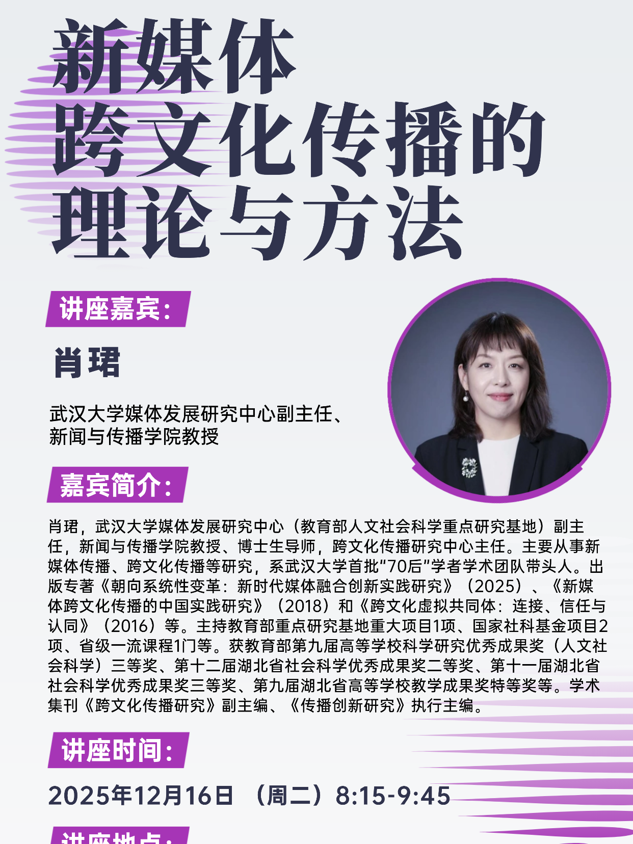 讲座预告 │ 肖珺:新媒体跨文化传播的理论与方法
