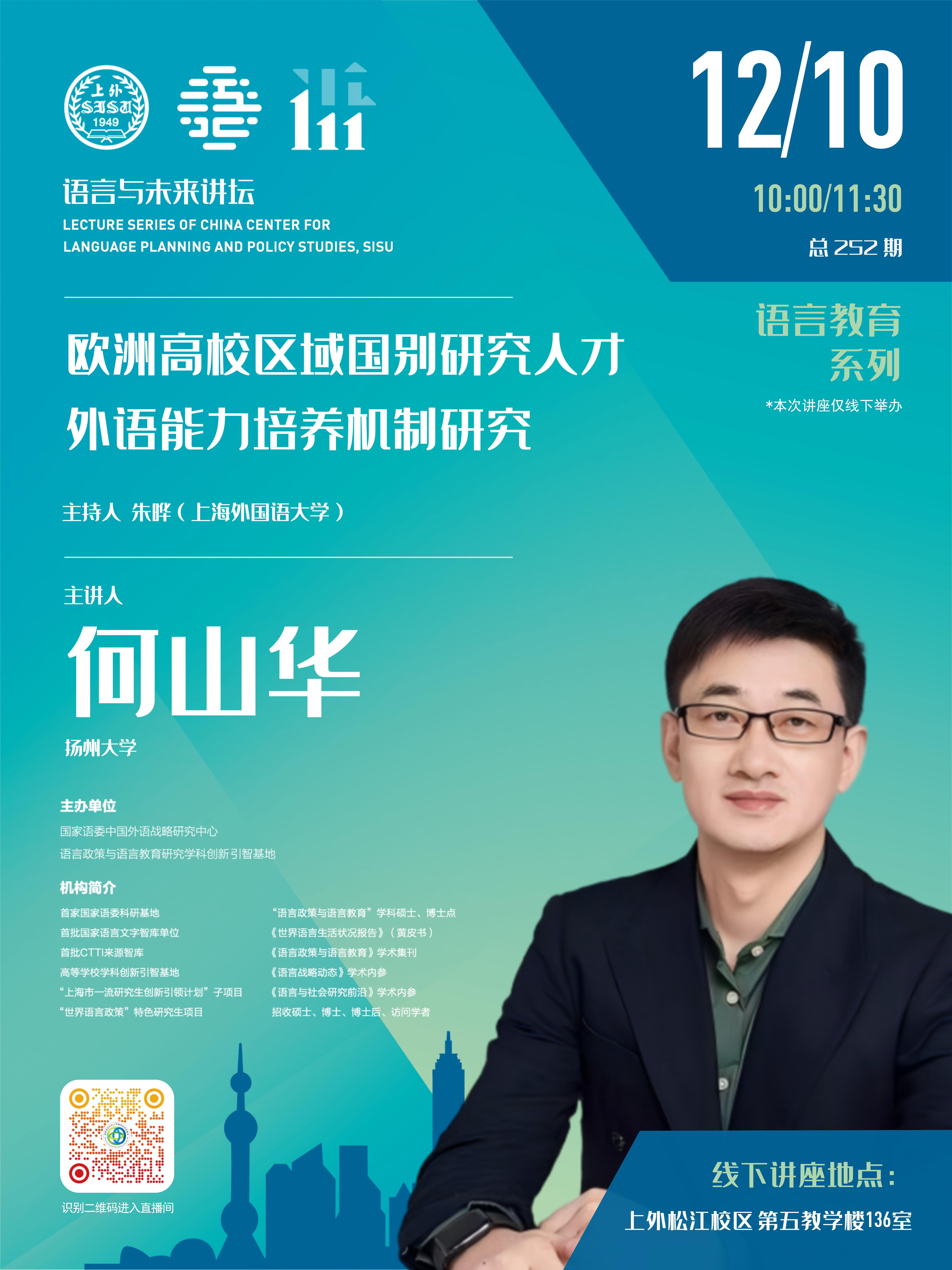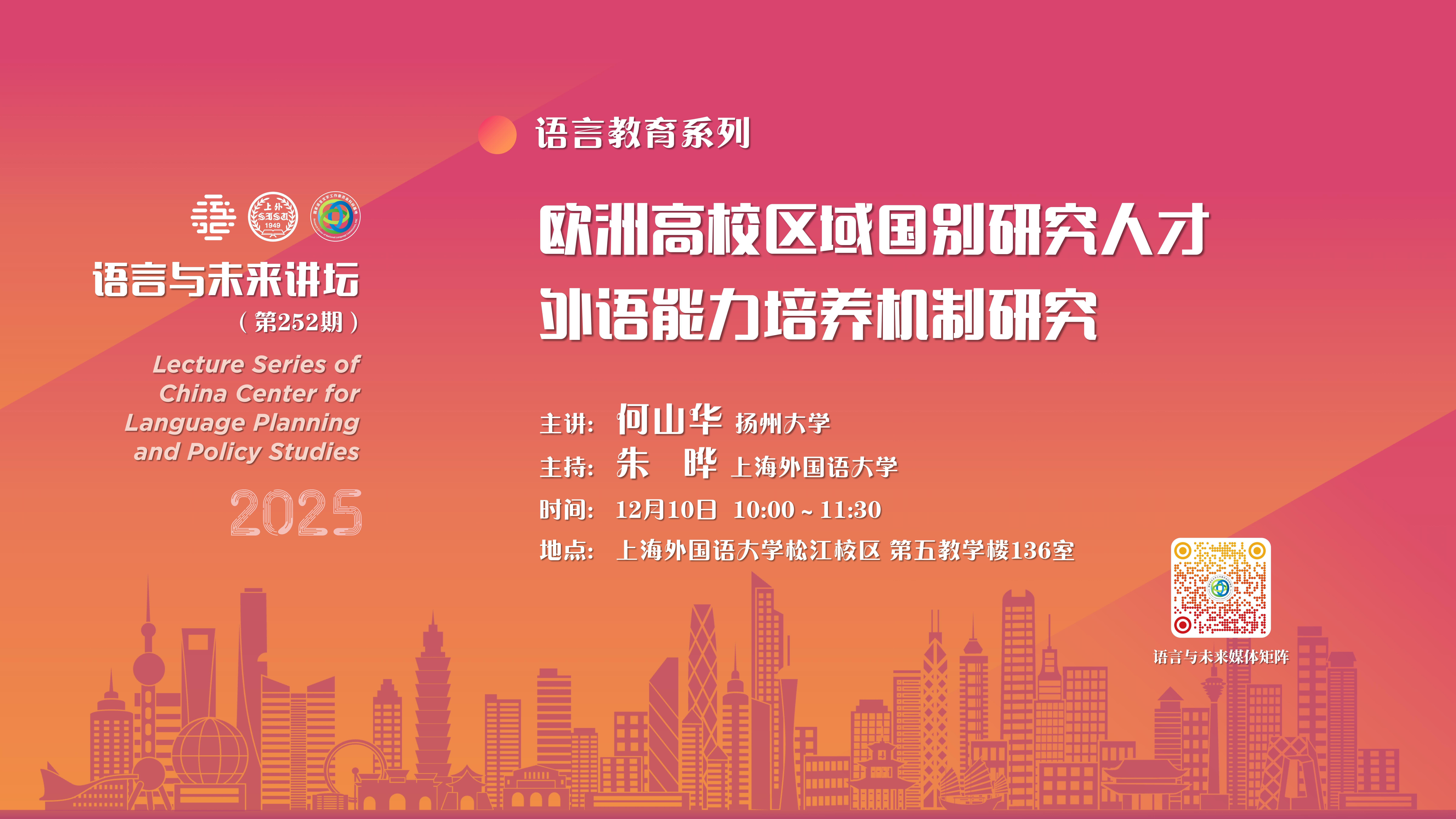 获取更多与本讲座相关的详细信息,敬请关注中国外语战略研究中心公众号“语言与未来”(ID: SISU_CCLPPS)的微信推送。