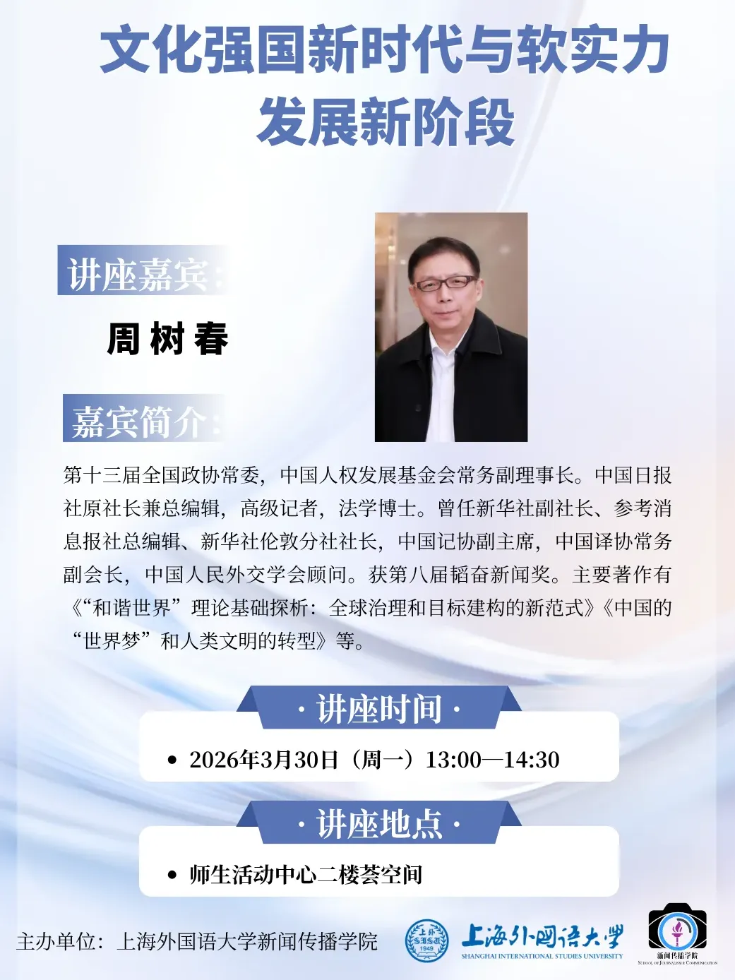 上海外国语大学研究员、上海区域国别研究院理事长,教育部高校哲学社会科学战略咨询委员会委员,国务院学位委员会区域国别学学科评议组召集人,上海区域国别学会会长,中德对话论坛成员;曾任上海外国语大学党委书记,中国驻德国大使馆公使衔参赞,教育部国际合作与交流司副司长,上合组织教育专家组组长,欧盟第七科研框架专家组成员;曾在北京外国语大学、德国波恩大学讲授“德国外交”和“20世纪中德关系”课程。长期从事区域国别、德国及欧洲研究和教育政策及外语教育研究,在《中国外语》《中国翻译》《中国高等教育》《外国语》《外语电化教学》《德国研究》《国际观察》《当代世界》和《人民日报》《光明日报》《中国教育报》《环球时报》《解放日报》《文汇报》等国内外报刊杂志上发表文章百余篇,是本科《理解当代中国》汉译徳教材联合主编。