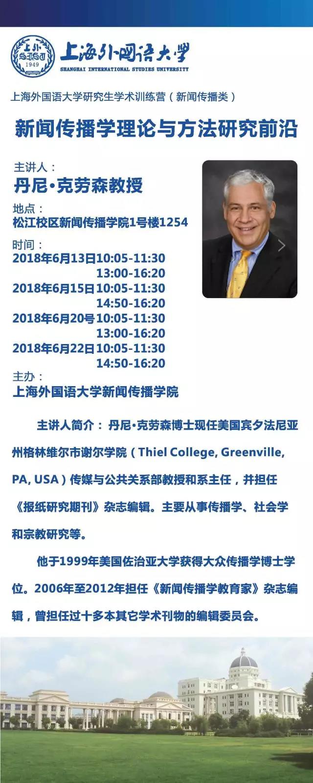 近年来,我校立足多语种、跨学科、跨文化优势,通过上海外国语大学海外研修项目,支持教师赴海外从事田野调查。本次讲座中,孙会军教授将分享在美国乔治城大学、俄克拉荷马大学访学以及拜访美国著名中国文学翻译家葛浩文、林丽君的经历,结合具体案例,探讨从副文本角度进行翻译研究的作法和学术意义。