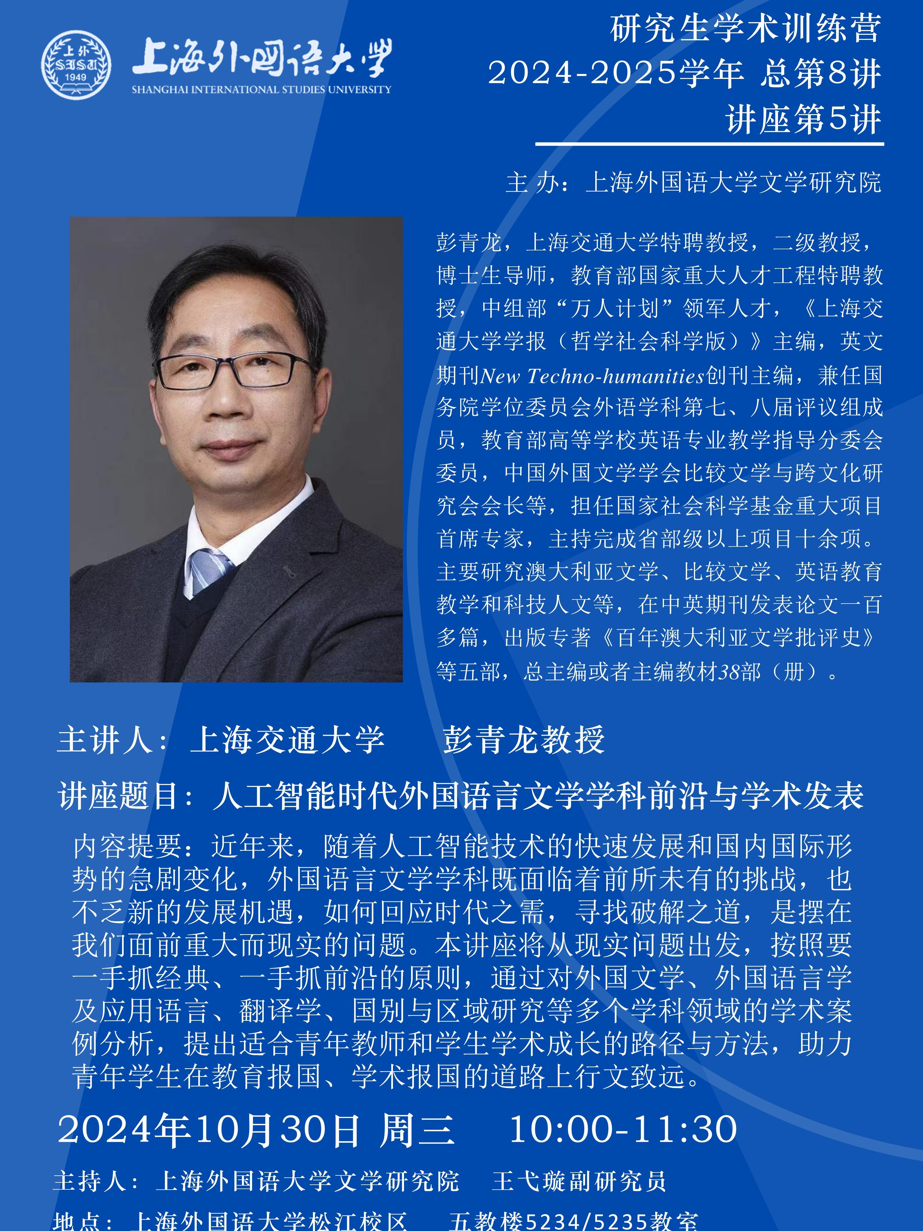 为全面贯彻落实党的二十大精神,助力提高人才培养质量,加快培养具有深厚家国情怀、良好人文素养、扎实专业基础、宽广国际视野、创新精神和全球胜任力的高素质人才,每年举办学术前沿大咖说讲座,该讲座由教育部中外人文交流中心主办。